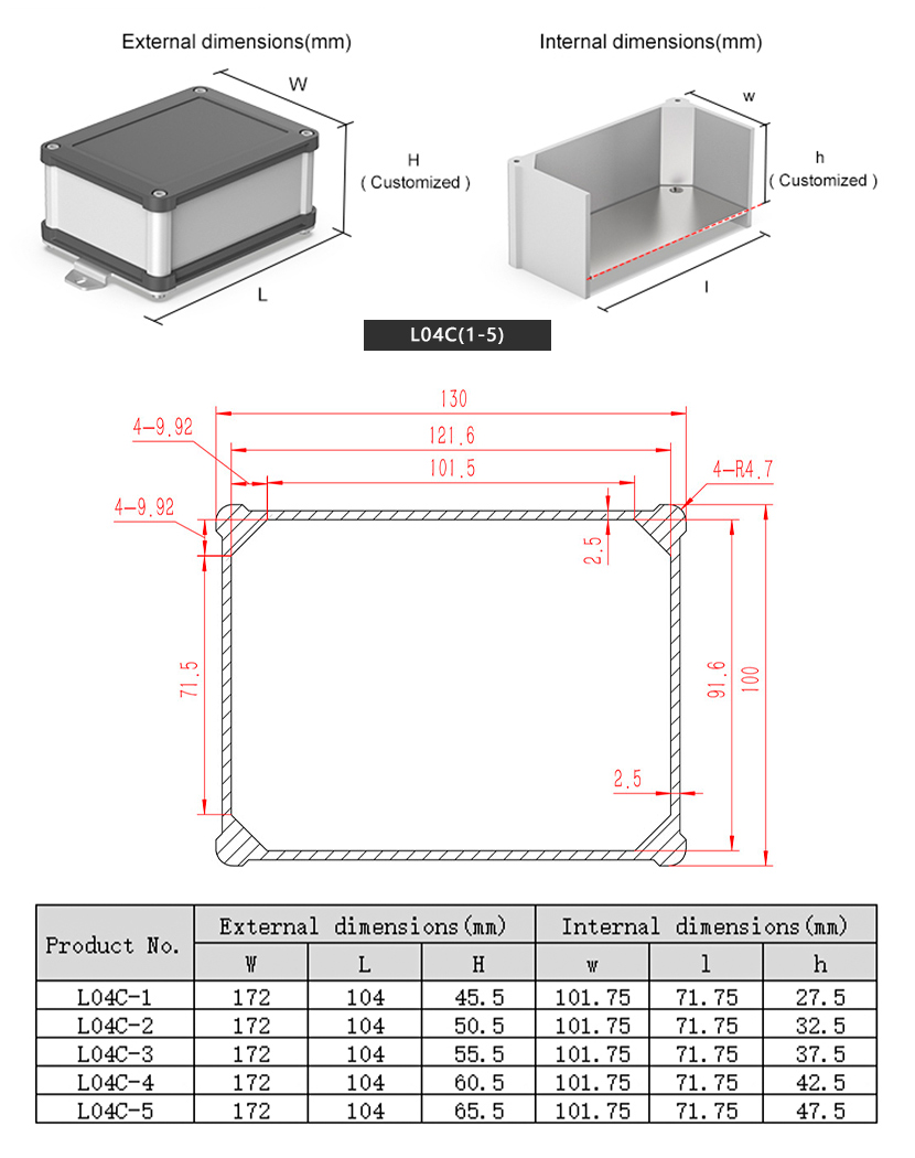 YONGU Extrusion Split Aluminum Enclosure H08 76W35H
