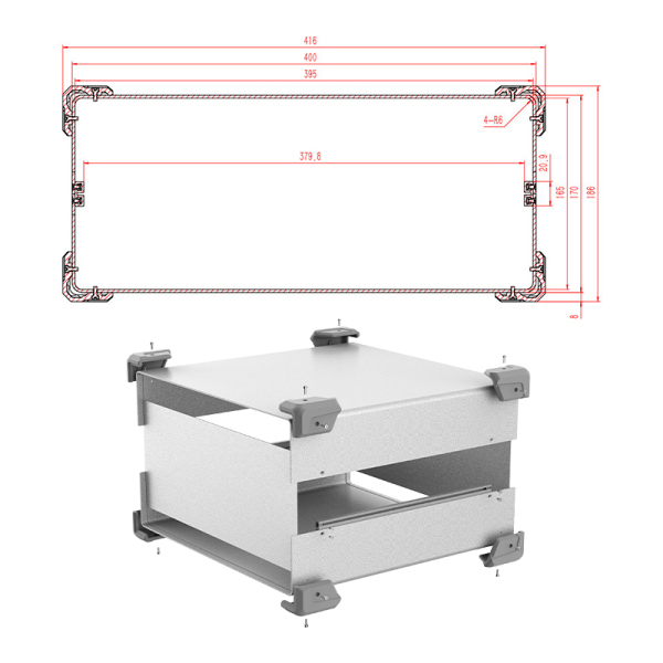 Aluminium instrument case equipped with shockproof and anti-slip corner guards.