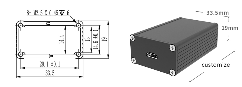 The enclosure is composed of three parts: shell+ front/rear panels+ 8 crews, adopted the AL6063S materials.