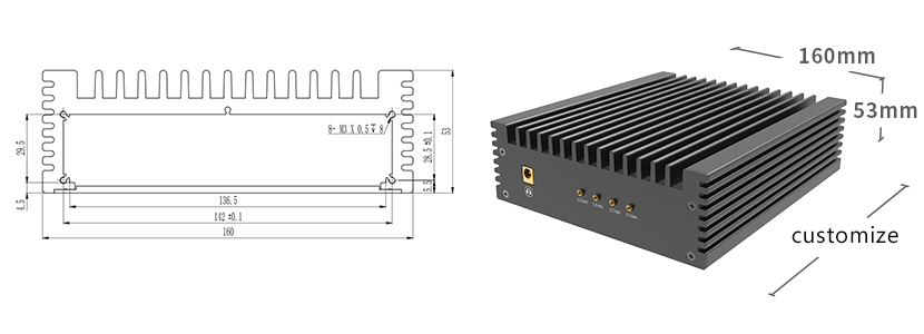 The enclosure is composed of three parts: shell+ front/rear panels+ 8 crews, adopted the AL6063S materials.